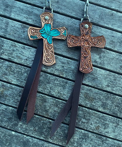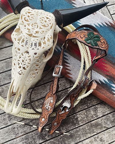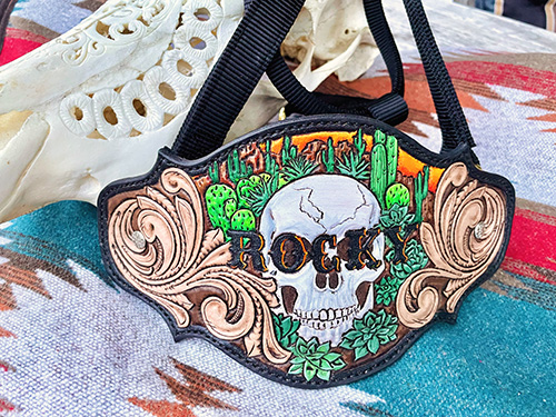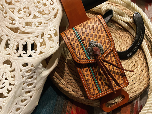 Passend zu meinen Mohair Cinches stelle ich auch Cinch Buckle Covers (Cinch Guards) aus Leder her. Und ich fertige immer wieder allerhand "Pretty Little Things" wie beispielsweise ausgefallene Bronc Nose Bands, Bottle/Saddle Bags oder Phone Holder. Falls Du eine Idee im Kopf hast und nach einem ausgefallenen Teil aus Leder für Dein Pferd oder Haustier suchst, schreib' mich an!